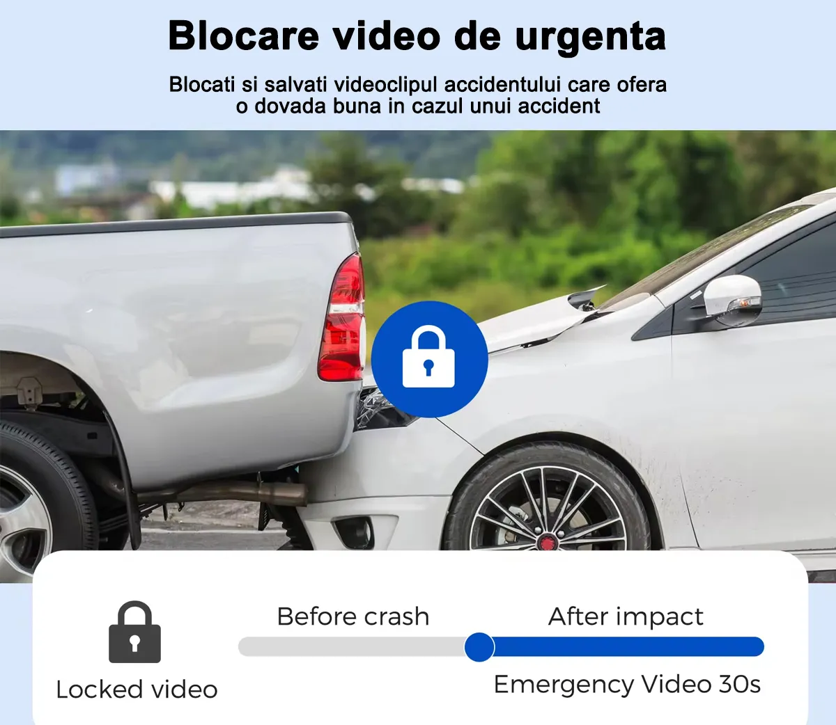 Senzor G - camera simte cand ai un accident. In caz de impact, imaginile sunt stocate automat in siguranta, astfel incat sa nu se mai piarda. Acestea nu mai pot fi suprascrise si nu pot fi sterse prin intermediul camerei de bord.
