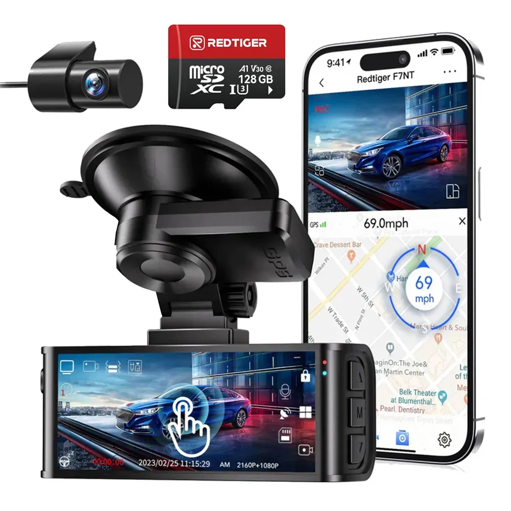 Pachet Cadou Craciun REDTIGER F7N Touch 4K+FHD, WiFi, Night Vision, 170°, ecran tactil IPS 3.18", GPS