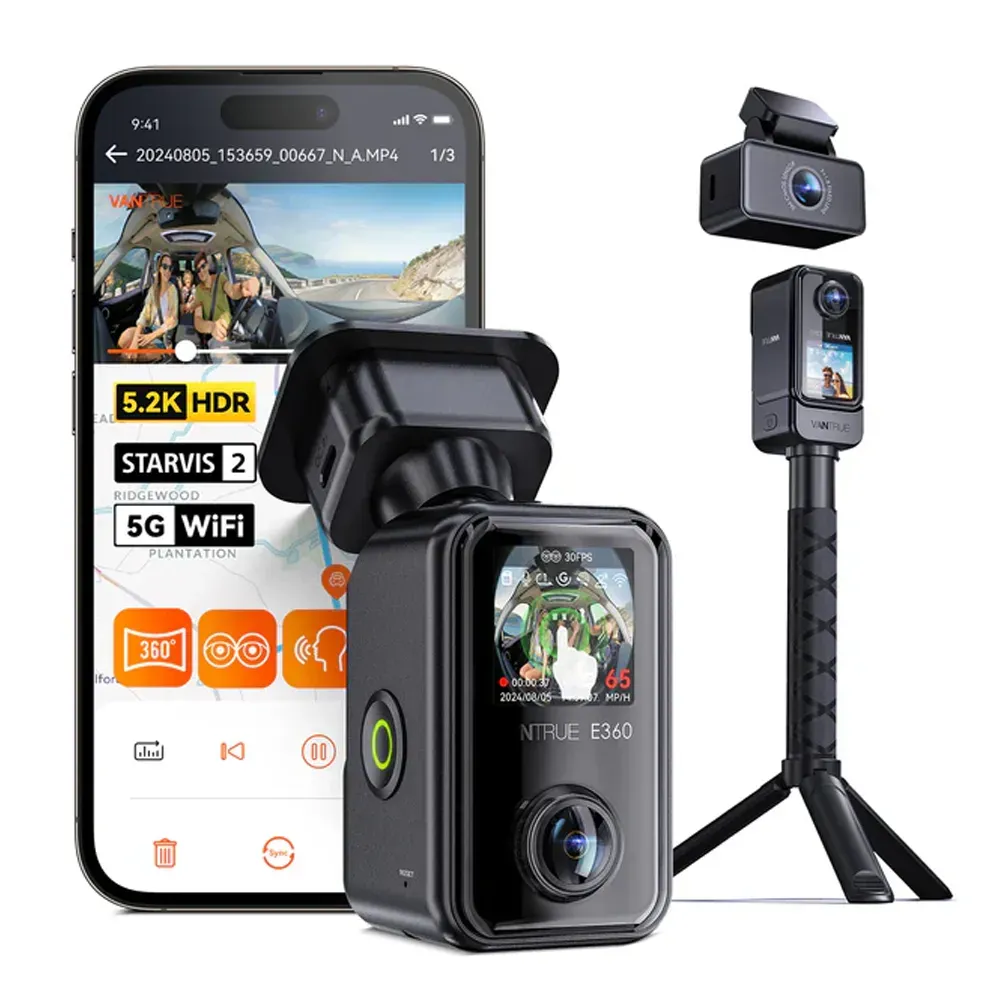 Pachet Cadou Craciun Vantrue E360 ACE Panoramica 360° 5.2K 30 FPS, WiFi, Dual HDR
