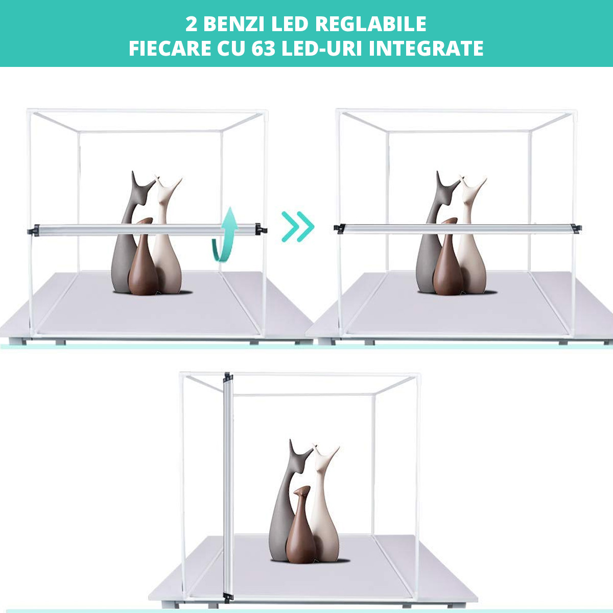 Indiferent daca ai nevoie de mai multa lumina, de culori mai inchise sau mai deschise sau nu iti doresti umbre in imaginile realizate, atunci acest studio box este alegerea ideala.