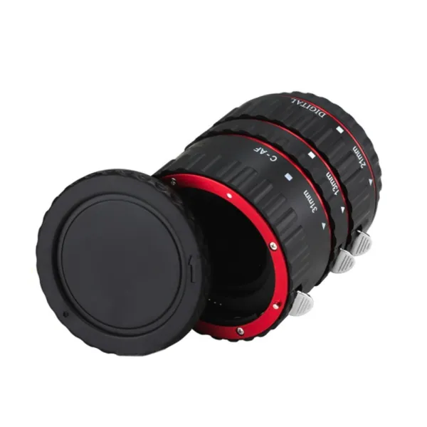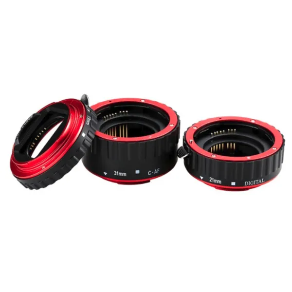 Setul oferit de noi pentru aparatele Canon este format din trei astfel de inele macro DSLR, de lungimi diferite ce au 13 mm, 21 mm sau 31 mm. Inele pot fi folosit independent sau combinate. Ce este important de retinut este ca o distanta mai mare formata de tuburi va ajuta obiectivul sa focalizeze mai de aproape.