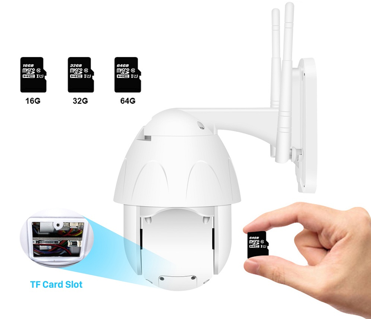 Camera poate inregistra cu voce atata timp cat aveti un microSD (capacitate maxima 64 GB) inserat in aceasta.