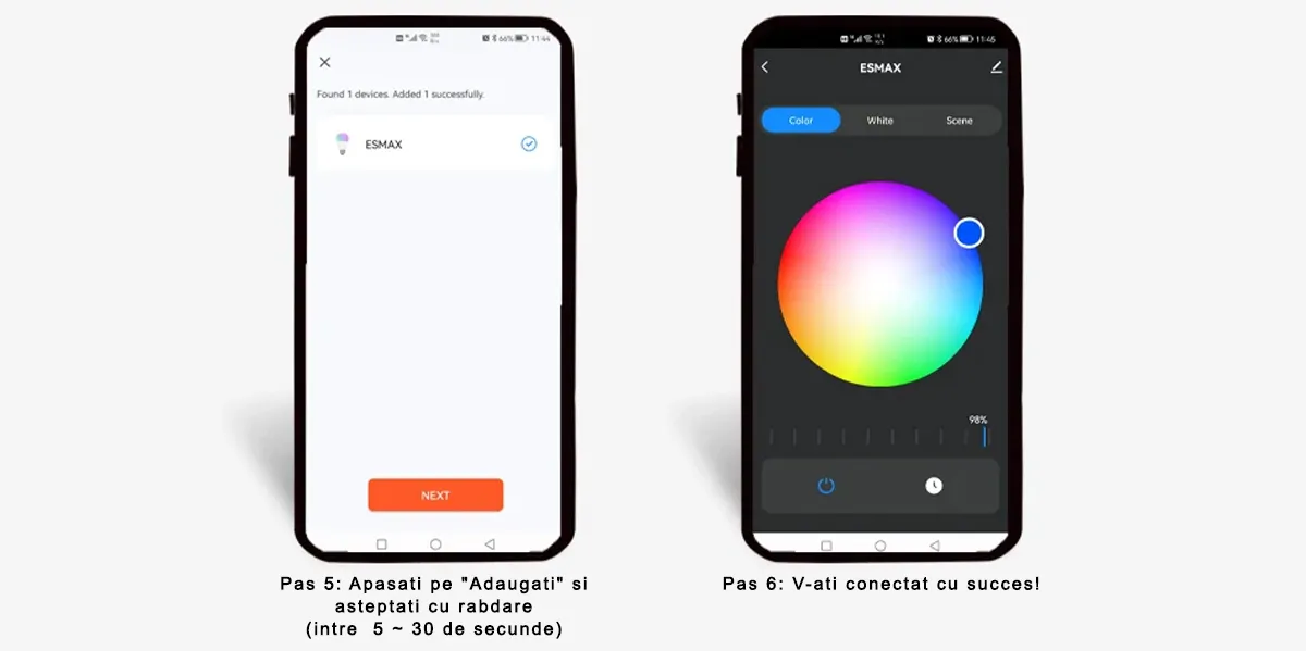 Prin intermediul aplicatiei dedicate (Tuya / SmartLife) puteti ajusta intensitatea luminii intre 1-100% sau puteti schimba culoarea, avand tot spectrul RGB.