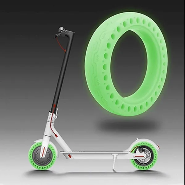 Aceasta anvelopa solida din cauciuc are culoarea galben-alba la lumina zilei. In timpul noptii sau in orice locatie este intuneric, acestea vor lumina intr-o culoare fluorescenta albastra / verde, lasand ceilalti participanti la trafic sa va observe cu usurinta.