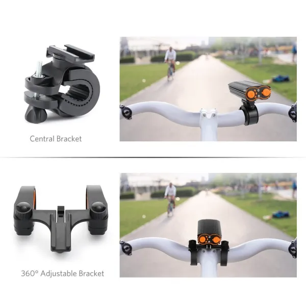 Aceasta lanterna LED pentru bicicleta si trotineta este alimentata cu cea mai recenta tehnologie LED T6, avand o lumina foarte puternica de 2000 lumeni si fasciculul ajunge pana la 300 de metri. Aceasta lanterna LED face calatoria pe timp de noapte sa fie mult mai sigura.